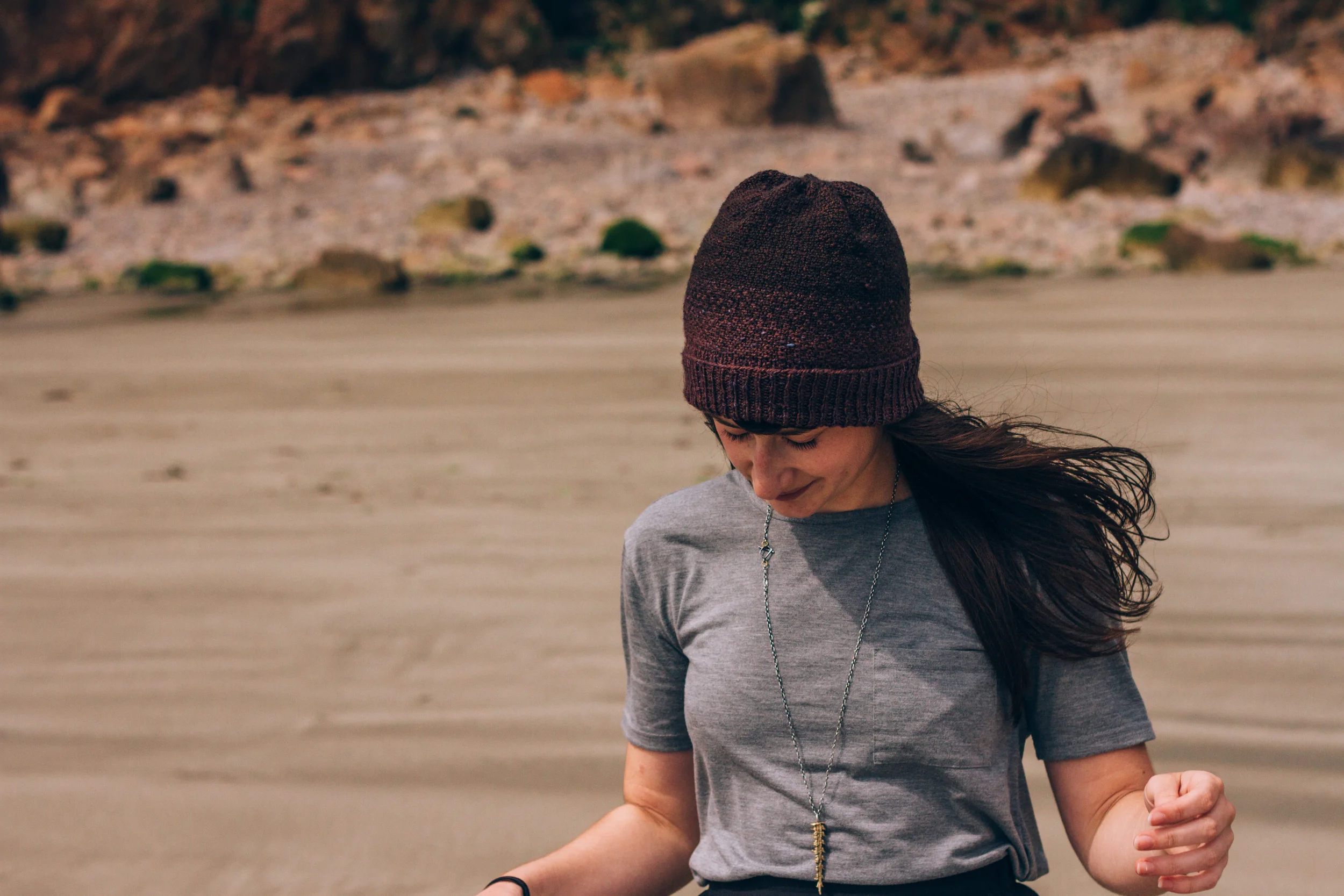 The first blend is Terra, a rugged Aran weight blend of baby alpaca, merino wool and silk. My first idea was to reknit my Reversible Cable Headband because one skein of Terra is perfect for this project. I never seem to tire of knitting this headband. It's incredibly quick and easy to do. It was a pleasure to have a change from the neutral colours I usually use for this pattern and knit with the beautiful colour pallet Terra is available in. This sample is knit in their colour, Black Locust Bark. Also, this time last week I was soaking up the sun's rays on Guernsey. See my last post as to how I ended up there. However, Guernsey allowed me to photograph my new pieces against its breathtaking landscape. Plus no wind machine necessary, bonus! The following photos were captured by my housemate, Marcel Le Bachelet, on our hike along Icart Point. He's a talented social media guru and photographer extraordinaire, so check out his site!